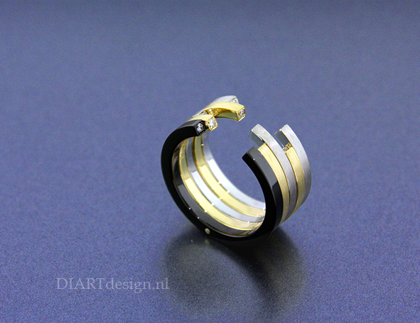 Uit goud, platina, titanium of zwart zirconium, gecombineerd met briljant of edelstenen.